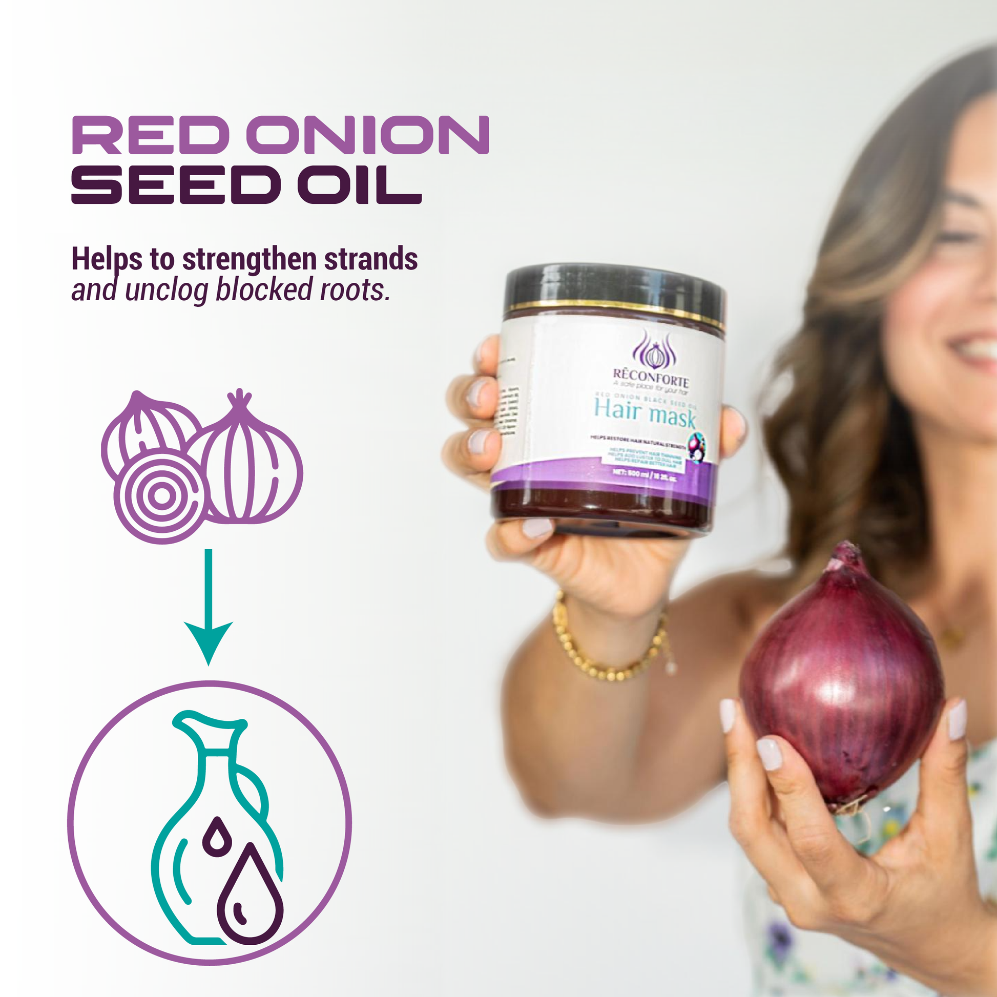 La mascarilla capilar de cebolla Rêconforte está formulada para prevenir la rotura y el debilitamiento del cabello, promoviendo un cabello más grueso y fuerte al reducir la caída y fortalecer los folículos pilosos gracias a su alto contenido en azufre. Esta mascarilla limpia profundamente el cabello y el cuero cabelludo, eliminando impurezas y residuos de producto, a la vez que aporta nutrientes esenciales para un crecimiento capilar saludable. Rica en antioxidantes, revitaliza el cabello seco y trata problemas del cuero cabelludo como la caspa y la irritación, dejando un cuero cabelludo limpio y sin descamación. Rêconforte se compromete con prácticas libres de crueldad animal, realizando pruebas exclusivamente en voluntarios humanos bajo supervisión médica. La marca se centra en la cosmética natural, saludable y de alta calidad, seleccionando ingredientes activos eficaces para crear productos innovadores de cuidado personal para rostro, cuerpo y cabello. 🧅