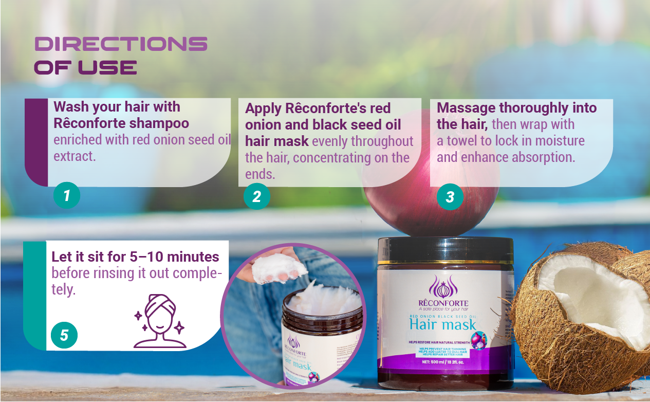 Rêconforte Onion Hair Mask is formulated to prevent hair breakage and thinning, promoting thicker and stronger hair by reducing hair loss and fortifying hair follicles with its high sulphur content. This mask deeply cleanses the hair and scalp, removing impurities and product buildup while delivering essential nutrients to encourage healthy hair growth. Rich in antioxidants, it revitalizes dry hair and addresses scalp issues such as dandruff and irritation, providing a clean and flake-free scalp. Rêconforte is committed to cruelty-free practices, conducting tests exclusively on willing human volunteers under medical supervision. The brand focuses on natural, healthy, and high-quality cosmetics, selecting effective active ingredients to create innovative personal care products for the face, body, and hair. 🧅